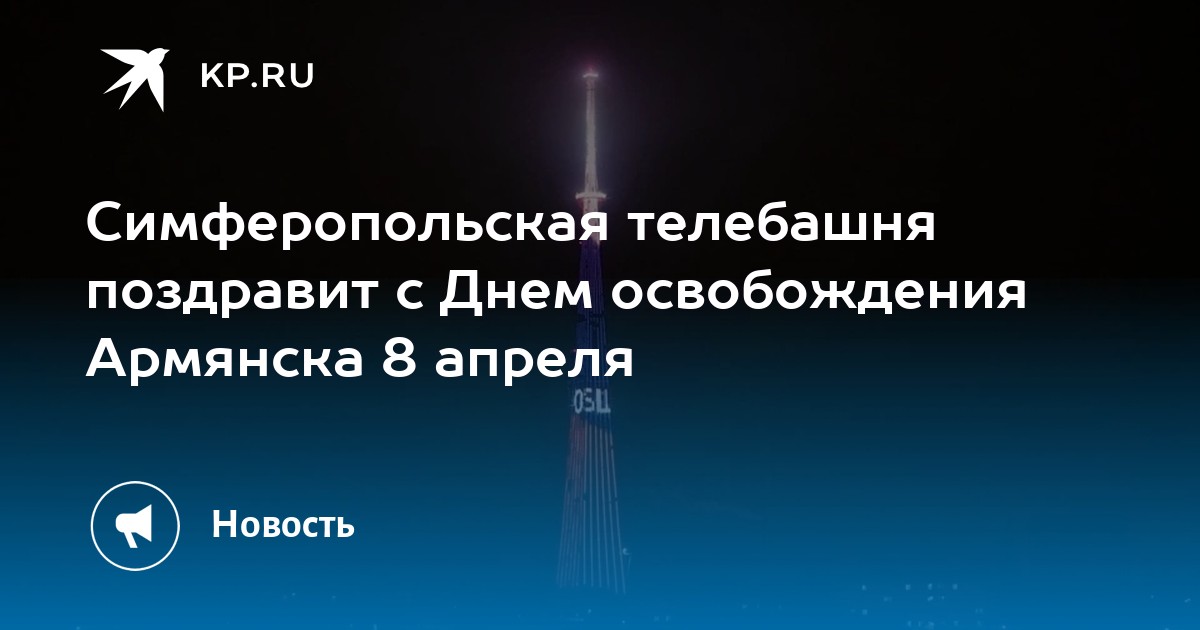 На телебашне Симферополя 8 апреля, в среду, включат праздничную подсветку в ознаменование Дня освобождения Армянска.