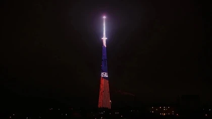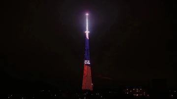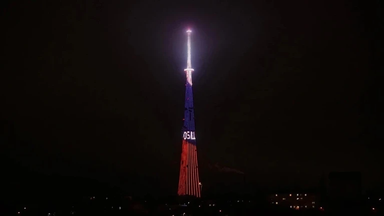 С 20:00 до 22:00 телебашня будет озарена красным светом, а на медиафасаде появится надпись «С Днем освобождения Армянска!», красные звезды и символика города.